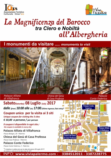 MODALITA': Le visite guidate al Piano Nobile di Palazzo Francavilla saranno eseguite dagli attuali Proprietari e Padroni di casa. Per il rispetto delle norme anti covid-19 tutti i partecipanti dovranno indossare la mascherina, usare gel disinfettante e mantenere il distanziamento. L'organizzazione delle visite è curata dall'Associazione Itiner'ars (viviapalermo).